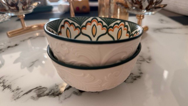 This set of 2 is designed to make everyday dining feel a little more special. Each bowl features a beautifully embossed exterior paired with a vibrant floral interior — a combination that enhances everything from snacks and soups to curries, dips, and desserts. Made with premium high-quality ceramic, these bowls feel sturdy in the hand and look stunning on any table setup. They strike that perfect balance: modern appeal on the outside, timeless artistry on the inside. Whether you’re hosting guests or enjoying a quiet meal at home, these bowls elevate the moment effortlessly.