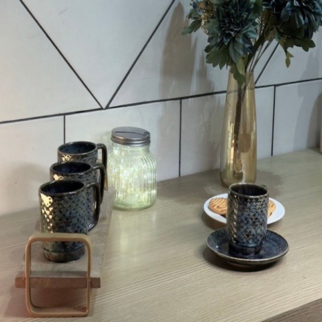 Elevate your everyday tea or coffee ritual with the Azure Weave Cup & Saucer Set, an exquisite blend of craftsmanship and design. Handcrafted in premium ceramic, each cup showcases a textured lattice weave pattern finished in deep royal blue glaze — creating a luxurious interplay of light and texture.