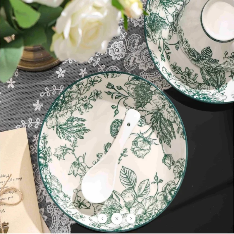 Add an elegant floral charm to your dining moments with the Cevora 14-Piece Snack & Soup Set, crafted to blend everyday functionality with timeless artistry. Featuring delicate green botanical motifs on a soft ivory base, each piece captures the beauty of nature in fine ceramic form.