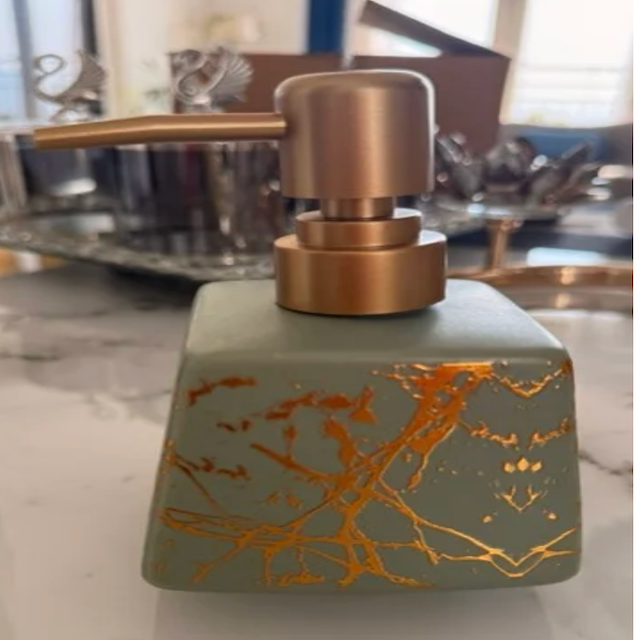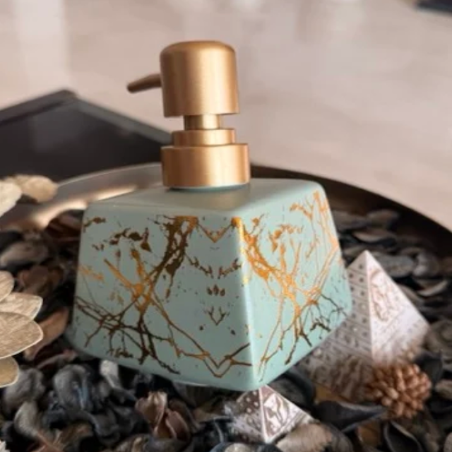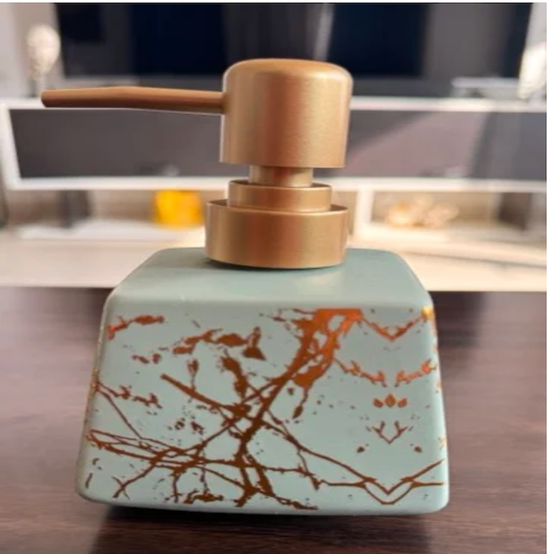 Elevate your vanity or bathroom counter with the Luxe Marble Mist Ceramic Dispenser, a chic modern essential crafted for those who love functional luxury. Designed with a soft matte ceramic body and finished with striking metallic marble accents, it adds an instant touch of sophistication wherever placed.