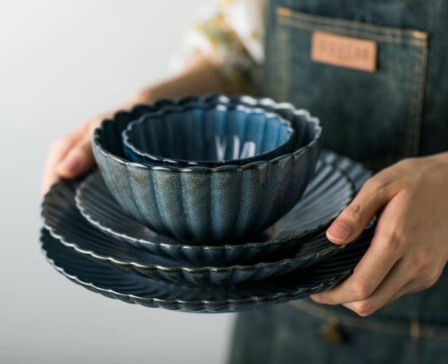 Statement Dinnerware: A rare deep-blue design that stands out from generic dinner sets.