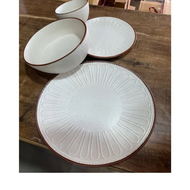 Premium Embossed Ceramic Dinner Set – Ivory glaze with terracotta rim