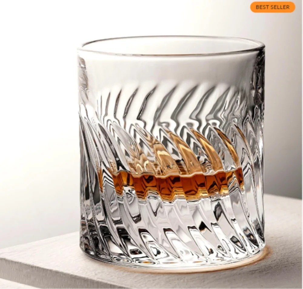 Elevate your drinking ritual with the Luxury Whiskey Glass, designed with a striking swirl cut pattern and a bold heavy