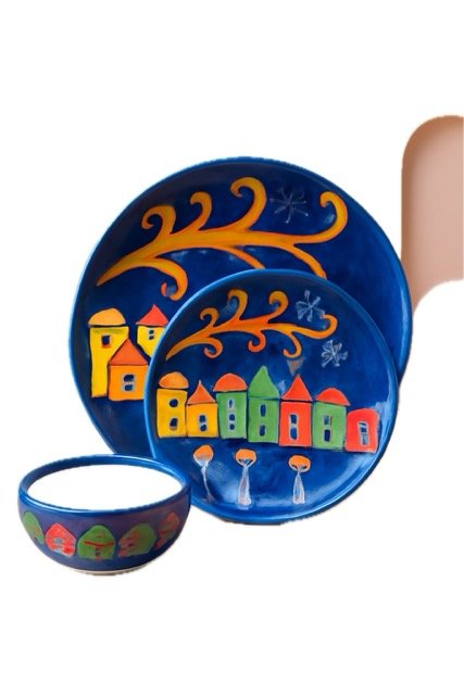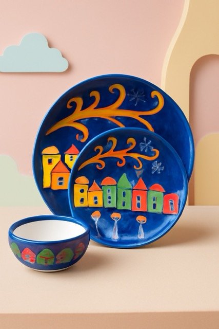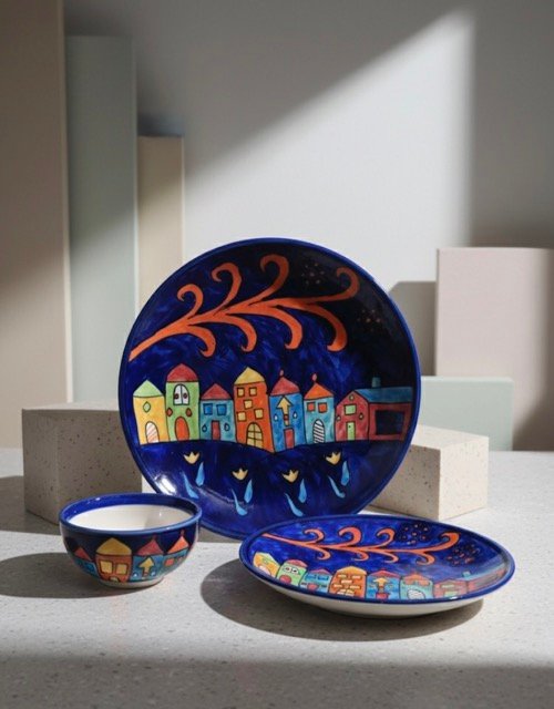 Bright Hut – Hand-Painted Ceramic Kids’ Dinnerware Set | Full Plate, Quarter Plate & Bowl