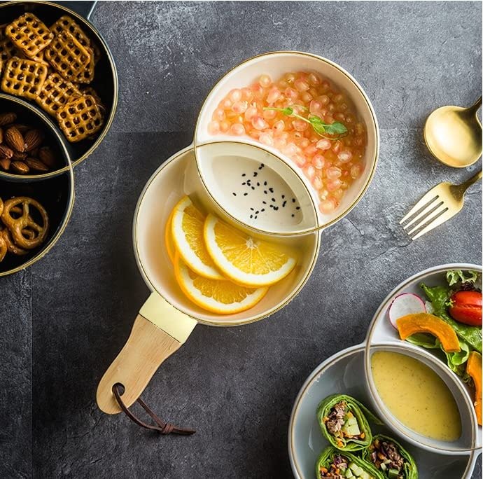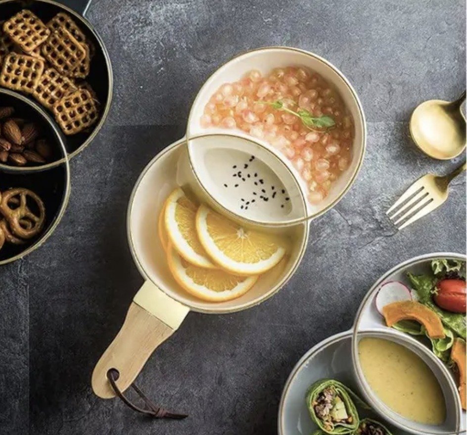 ChicNibble Ceramic Set - Stylish Duo Snack Bowls with Wooden Handle