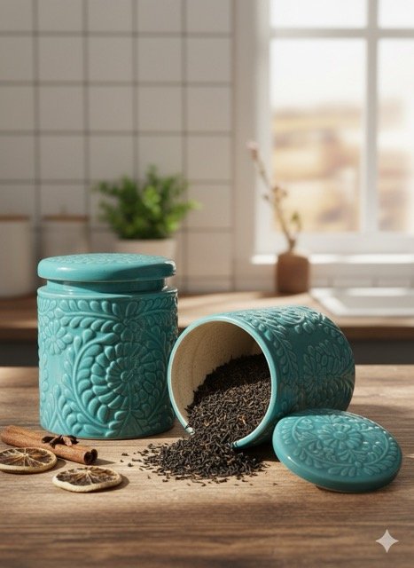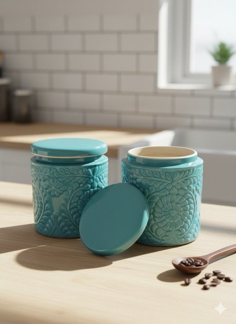 Elevate your kitchen with this stunning Aqua Blue & Ivory White Lotus Etch Embossed Ceramic Jar Set. Crafted from high-quality ceramic and featuring intricate floral embossed designs, these airtight containers bring both style and organization to your daily routine. The vibrant aqua blue glaze adds a refreshing pop of color and matches modern, luxe, and traditional décors, making these jars decorative yet highly functional. Each jar comes with a secure, airtight lid to keep contents fresh, protected from moisture and dust—perfect for storing tea, coffee, spices, snacks, bath salts, cotton pads, or personal essentials.