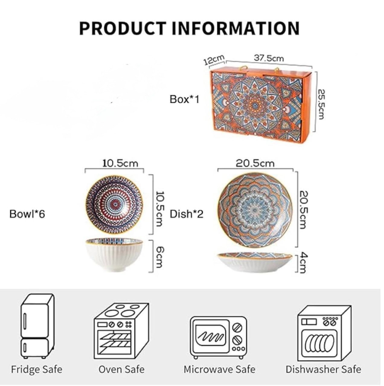 Each bowl has a one-of-a-kind mandala design, adding visual interest and artisanal flair Vibrant inner artwork with a neutral exterior for versatility Great size for desserts, salads, dips, snacks, or dry fruit Comes in a beautiful box, making it ready-to-gift with zero effort Durable glaze and high-quality ceramic make it microwave and dishwasher safe