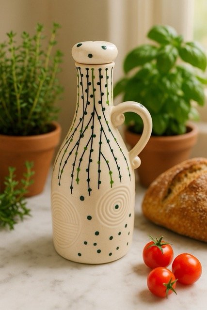 Upgrade your kitchen’s functionality and style with this large 1000ml hand-painted ceramic oil dispenser. Showcasing a gorgeous white glaze and abstract botanical patterns in green and black, this generously sized bottle combines artisan charm with daily practicality. The sculpted handle and artfully shaped spout allow for effortless, controlled pouring—ideal for olive oils, vinegar, and homemade infusions. Expertly crafted from robust, food-safe ceramic, this oil bottle shields oils from sunlight and air, preserving freshness and flavor for longer.